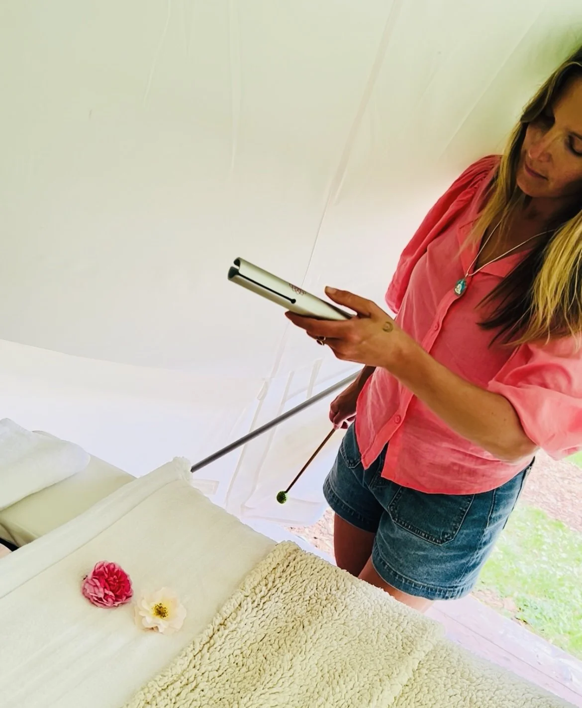 I’m trained in Divine Energy Healing (Vortex Healing® Level 1), allowing me to support both physical and energetic release for deeper alignment. I also use Chakra Pulse tubes, a sound healing tool I discovered in Auroville, India. Each tube resonates with a different chakra, creating tones that gently clear blockages, calm the nervous system and restore balance.